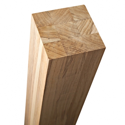 Pés de mesa MCA de painel produzido com sarrafos de cerne e alburno de teca.